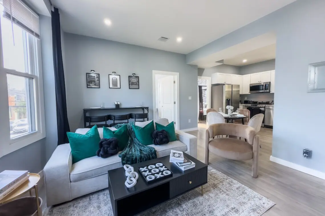 Need to mix business with pleasure? This apartment is tailor-made for remote workers and business travelers. A quiet, comfortable workspace, speedy Wi-Fi, and central location near Newark, NYC, and major institutions make it a smart (and stylish) choice for working stays.